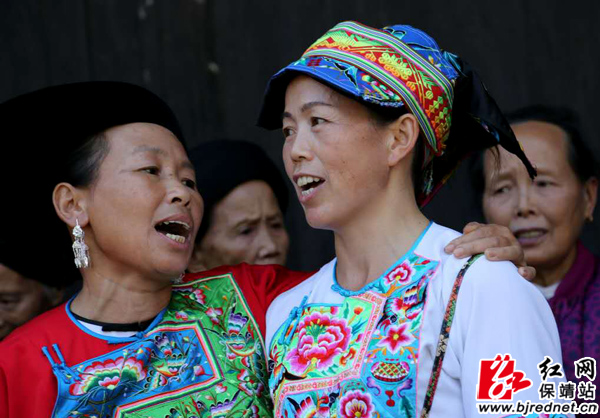 乡亲们用最质朴的苗歌来欢迎向艳梅回家 彭司进 摄