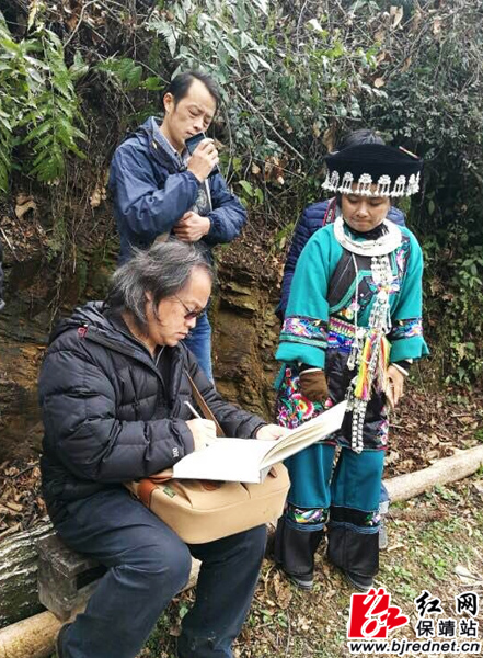 他们是“武陵追梦·2016”湖南省文艺家采风创作采风团成员,11月7日,省文联副主席、省画院院长刘云带领采风团来到吕洞山,在这块秀丽、神奇的地方,深入走进原生态的苗寨群落与体验浓郁的苗族风情,用文艺家独有的视角挖掘其独有的艺术价值,用文艺创作的方式呈现吕洞山的神奇之美、苗族风情之丽。