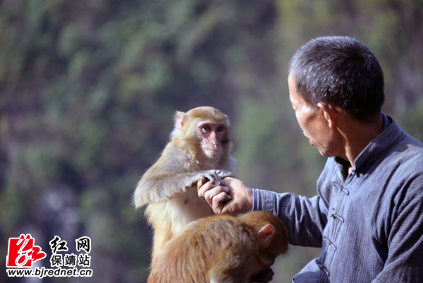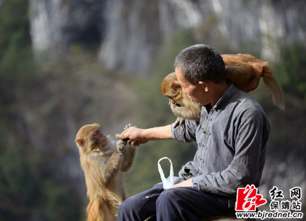 人猴亲如一家 张承印 摄