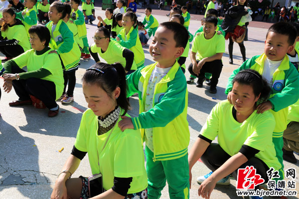 “爸爸妈妈辛苦了,让宝贝给你揉揉肩。” 彭礼 摄