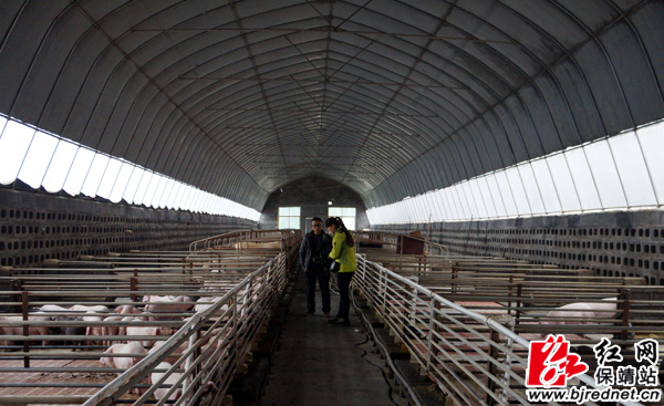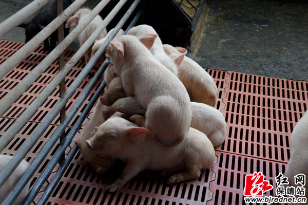 连绵的群山环抱中,一间长长的石头垒成的房子就是李昌茂示范园的场部,门前是宽敞的水泥坪场,放着几张乒乓球台,坎下稍远是一泓呈几字形的鱼塘,垂柳依依,屋侧后是一片葱郁的桂花林,半山腰是几间新修的气派的猪舍。我们随李昌茂走进其中最大的一间,只见几百头黑猪白猪猪仔在一个个宽敞的猪栏里挤挤挨挨,胖嘟嘟的可爱极了,靠里是一些母猪的产床,一头头大母猪懒懒地躺在里面,嘴里哼哼唧唧。一个工人将下面一间猪舍的大大小小的黑猪放了出来,这些“训练有素”的猪摇摇摆摆地走向山顶的草场,我们跟了上去,草场间种的无数株腊梅正在开花,清香淡淡,树下的黑麦草翠绿茵茵,一群群猪在其中撒欢,好美的原生态景象,真让人大开眼界。