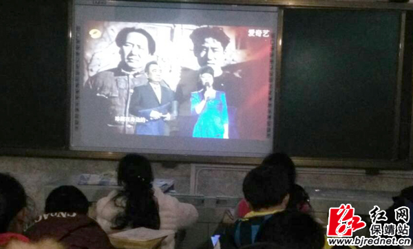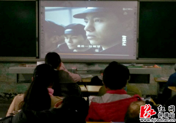 组织学生观看视频《恰同学少年》(手机拍摄)