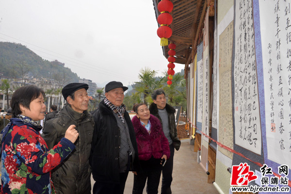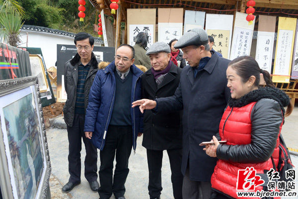 红网保靖县分站1月10日讯(记者 张承印 彭伟) 1月8日,保靖县2017年迎新春书画展在迁陵镇社峰村苏家坪拉开帷幕。全县60余名书画爱好者和社会各界人士参加了书画展活动。保靖县人民政府副县长胡文峰、县政协副主席胡承元等相关领导出席活动。