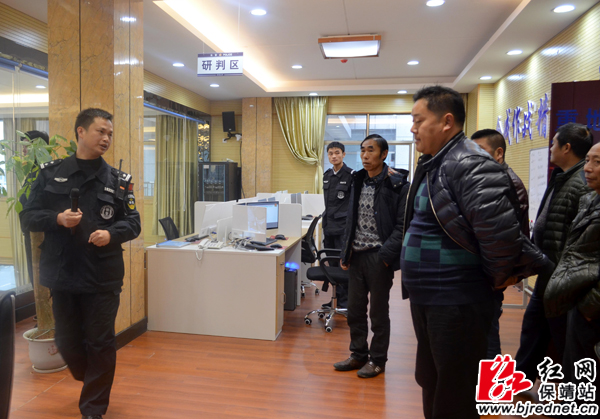 县公安局指挥中心主任李健向群众代表介绍相关工作