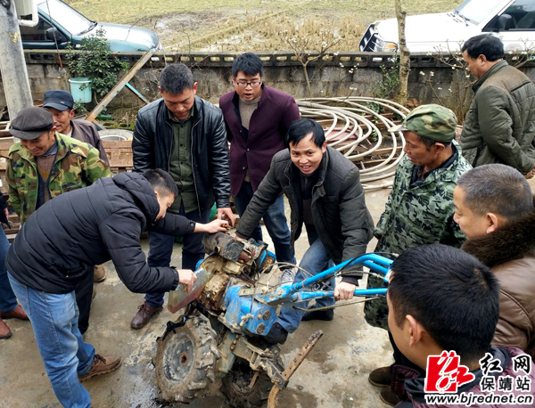2月9日,保靖县农机局农机服务队到阳朝乡裕民农机专业合作社检修农机具