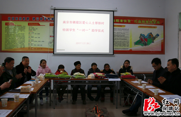 红网保靖县分站2月13日讯(特约通讯员 王槐松)2月9日,来自南京市栖霞区的12名爱心人士组成的爱心团队,不远千里来到湖南省委老干局驻点扶贫村——保靖县迁陵镇那铁村,“一对一”救助该村特困学子。保靖县人民政府副县长王万双、省委老干局驻那铁扶贫工作队队长彭小平一同参与助学活动。