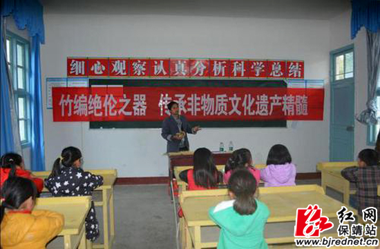 红网保靖县分站3月13日讯(通讯员 龙绍芳)3月7日,湖南省非物质文化遗产传承人、湘西州首个省级竹艺编织非遗传承人姚元飞,来到保靖比耳学校为该校少年宫活动中心免费开班授艺。