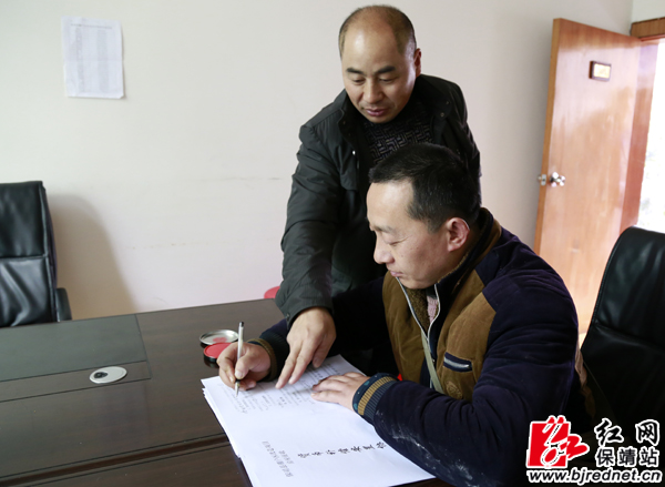 棚户区群众在工作人员指导下签订协议