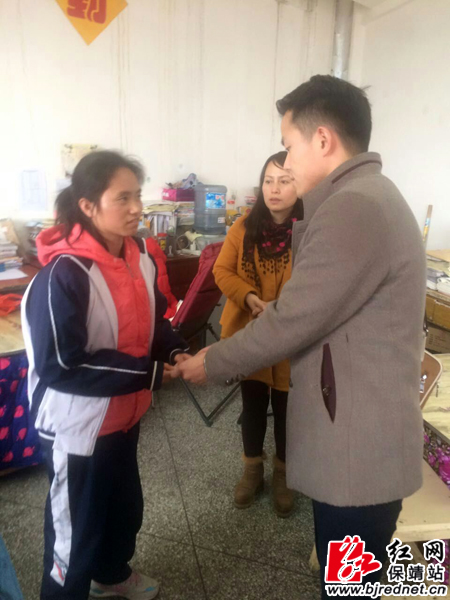 梁英英家由于爸爸出车祸住院,母亲要照顾爸爸,家里还有年幼的弟弟、妹妹和一个八十多岁的老奶奶,这给她的学习和生活带来很大的困难。保靖团县委工作人员了解到这个情况后,马上来到保靖民中,将1000元生活补助金为送到梁英英手中,并鼓励她,要有战胜困难的信心,好好学习,做一个勤奋努力的好学生。(龙晓玉)