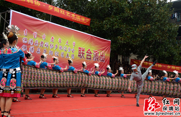 红网保靖县分站3月22日讯(记者 张承印)为加强老年大学之间的横向交流,丰富教学内容,展示办学成果,3月21日,保靖县老科协、夕阳红艺术团与吉首市老年大学两地学员齐聚保靖、联袂演出《欢乐苗鼓》、《我爱你中国》、《山歌唱出好兆头》、《忆红军》等近20个精彩节目。
