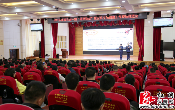 红网保靖县分站4月18日讯(记者 张坤 彭伟)4月16日,保靖召开2017年第一期“道德讲堂”暨全县文明创建工作现场推进会,县委常委、县委宣传部长尹海霞,县委常委、县纪委书记龙超颖等领导出席会议。