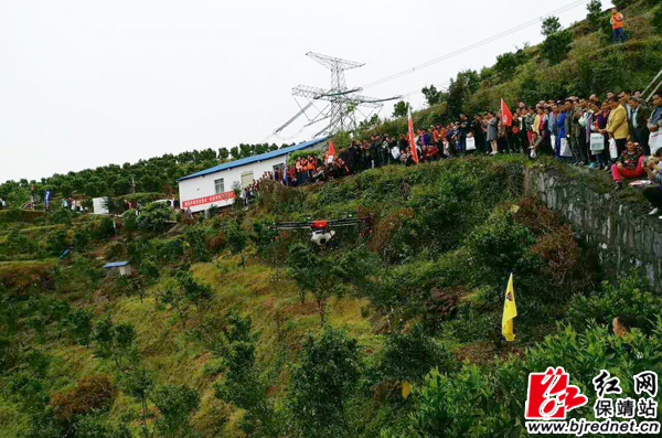 观摩无人植保机现场作业演示