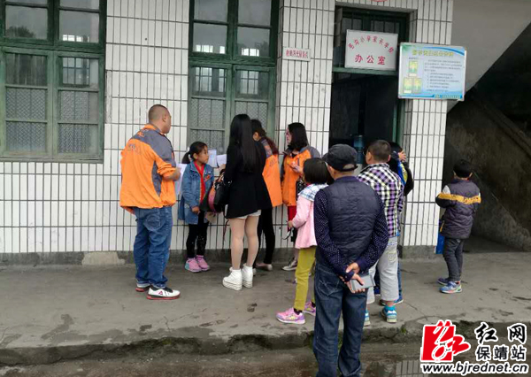 志愿者给贫困生赠送学习用品(手机拍摄)