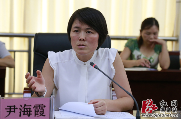 县委常委、宣传部长尹海霞在会上发言