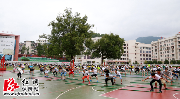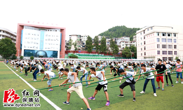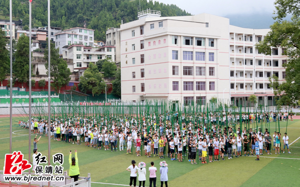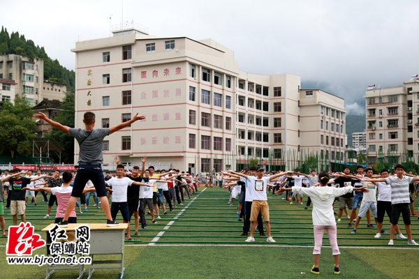 红网保靖县分站8月15日讯(实习记者 向彩鑫 胡一洁)近日,为了庆祝建州六十周年,保靖县参演开幕式的舞蹈《湘西号子》正在保靖民族中学操场上紧锣密鼓地排练当中。该舞蹈队由八百名学生组成,团队整体气势磅礴。