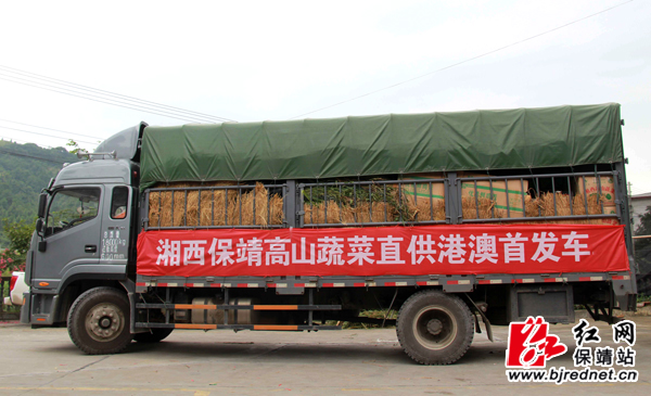 伴随着汽车汽笛声,在副县级干部彭利顺及现场所有人的目光中,湘西保靖高山无公害蔬菜直供港澳首发车带着脱贫致富的希望启程,驶向目的地香港、澳门。