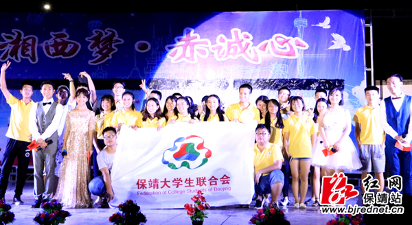 红网保靖县分站8月17日讯 (实习记者 向彩鑫 胡一洁) 为了呼吁年轻人“青眼看湘西”、“青笔写湘西”、“青声读湘西”、“青歌唱湘西”, 8月15日,保靖大学生联合会在县人民广场举办了“保靖县返乡大学生文化艺术”晚会。中共保靖县宣传部、团县委、香港沃土发展社湖南代表处保靖沃土农村综合发展协会、县审计局、县总工会参加本次节目。