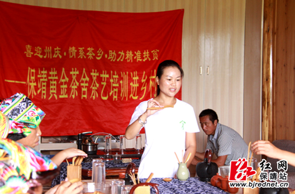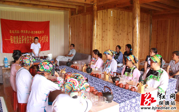 红网保靖县分站8月23日讯(实习记者 胡一洁)保靖黄金茶舍在葫芦镇国茶村组织开展第二期茶艺培训进乡村活动,为国茶村民送去了“及时雨”。