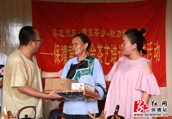 国茶村是保靖黄金茶的产茶大村,种茶收入是村民的主要经济来源,也是脱贫致富的主要途径。村民们会种茶、制茶,但在销售茶时,如何介绍茶、冲泡茶及更好的展示保靖黄金茶的品质特征方面的知识,却是知之甚少。得知有茶艺培训,村民们踊跃报名参加。前来参加培训的村民中有近80岁的老人,也有20多岁的年轻人,甚至还有一位身怀六甲的孕妇。这一活动保靖黄金茶舍着重于在茶具知识普及和茶艺实操方面进行了培训。活动评选出六位优秀学员,并由副县长胡文峰进行了颁奖。