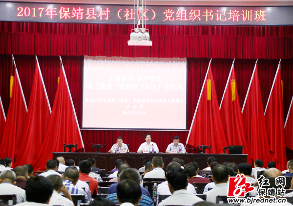 红网保靖县分站9月14日讯(通讯员 张媛 王勇)9月12日上午, 2017年保靖县村(社区)党组织书记培训班在县委党校举行开班仪式。保靖县县委书记卢向荣,县委常委、组织部长阳文魁及县委党校负责人等出席了开班仪式。该仪式由县委副书记周胜益主持。