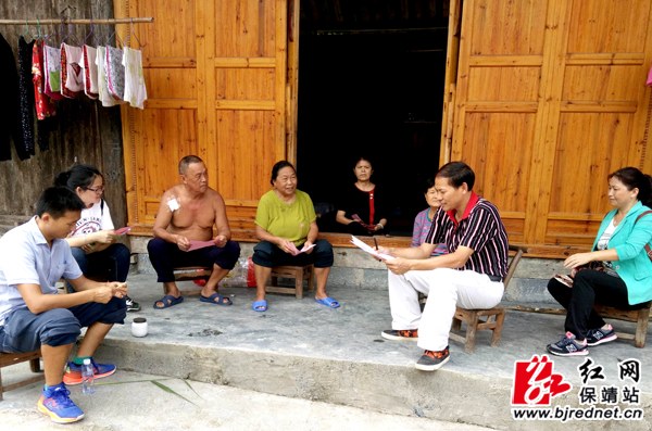 9月11日,保靖县委统战部、县工商联、县台办、县侨联全体干部兵分2路来到毛沟镇舍坪、略水帮扶村深入对象户家中走访,结合精准脱贫开展综治民调宣传工作。现场发放《创建平安保靖倡议书》和《综治民调调查问卷》宣传资料1100余份,大大提高了村民对综治民调工作的知晓率和支持率。(田仁喜)