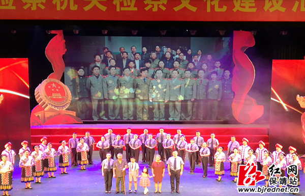 红网保靖县分站9月18日讯(通讯员 吴晓玲)9月12日晚上,湘西州大剧院里座无虚席,全州检察机关干部共聚一堂,以文艺演出的方式为湘西州成立60周年献礼。湖南省检察院党组书记、检察长游劝荣,湘西州人大常委会主任彭武长等领导观看了文艺汇演。