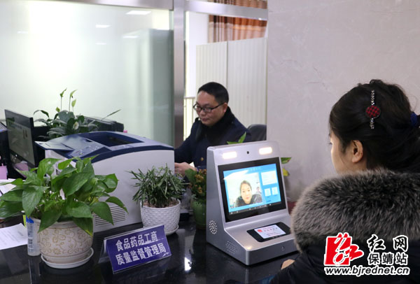 红网保靖县分站2月5日讯(通讯员 向松)近日,保靖县政务中心大厅企业登记窗口,前来办理企业设立登记业务的尚女士在窗口工作人员的指导下,拿出自己的二代居民身份证放在“人证合一”身份识别器感应区,并将脸部对准摄像头,2秒内完成身份验证,验证成功即可办证。身份证识别器的启用,意味着市场主体登记实名制在该县正式实施。