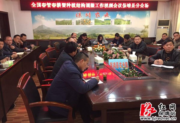 红网保靖县分站2月7日讯(通讯员 王俊华)为切实抓好春季田管和春耕备耕,扎实推进种植结构调整,2月5日,农业部召开全国春管春耕暨种植结构调整工作视频会议,保靖县农业局组织县农业局、县畜牧水产局、县农机局及县农村经营服务站班子成员及相关股站室人员积极参加学习。