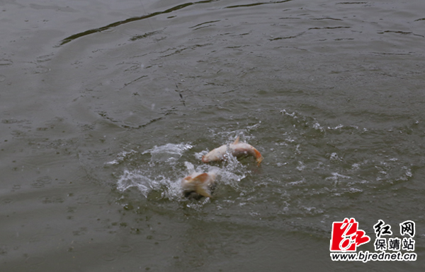 鱼儿破水而出,激起一水涟漪 彭伟 摄