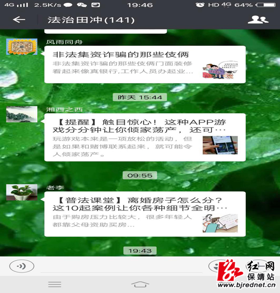红网保靖县分站4月24日讯(通讯员 周勇)“本人于2009年出国务工,在国外务工期间,有人拿我的身份证在复兴银行贷款5万,到今年都还没偿还,不知这行为是否违法?”近日,在保靖县司法局驻毛沟镇田冲村工作队创建的“法治田冲”微信群里引来不少群众发言咨询,针对群众反映的涉法难题,县“七五”普法讲师团讲师李林洋等细致耐心的一一予以答复。