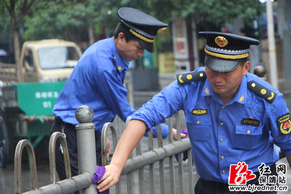 活动中,执法局全体干部职工和全县新团员手拿水桶、毛巾等工具,对保靖县城主要街道垃圾桶、公交站台、垃圾车、人行道栏杆等设施进行了清洗;并在人行道上对车辆,行人进行了文明交通、文明出行劝导。