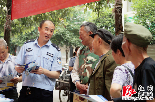 民警为过往群众发放宣传手册