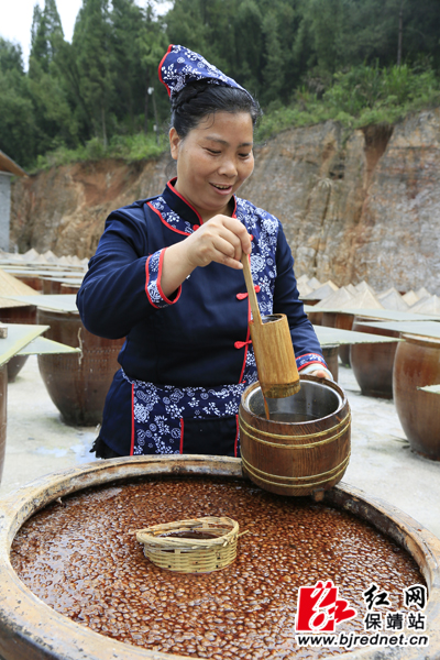 红网保靖县分站6月20日讯(记者 彭司进)过去,湘西一句妇孺皆知的话,导出两大让人引以为豪的特产:保靖的酱油河溪的醋。如今,河溪的醋还在市场畅销,而保靖酱油却踪迹难觅。在保靖县城,却有个女青年宋陆军,她投资300万元,做了一件让许多人不敢做的非物质文化遗产项目:传承保靖酱油手工制作技术。