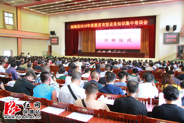 红网保靖县分站9月17日讯(记者 田丽)9月14日,保靖县2018年脱贫攻坚业务知识集中培训开班,县委副书记周胜益,县委常委、县委办主任黄宇,县委常委、组织部长阳文魁,县人大常委会副主任李明海、县人民政府副县长葛晓红、县政协副主席胡承元等县领导出席开班仪式。