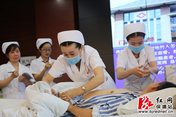 护理技能竞赛十分火热,9个小组一一登台,展示护理技能。赛场上,护士们从护理技能的熟练程度、操作技巧等方面展开竞赛;赛场下,大家相互观摩、讨论,互相取长补短,共同进步。