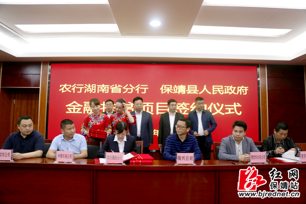 会上,湘西州分行与保靖县人民政府签订了合作框架协议;湘西州分行与瑞兴公司、博世科水务公司、松桂坊公司、中锦环保公司、寰宇陶瓷公司签订银企合作协议。