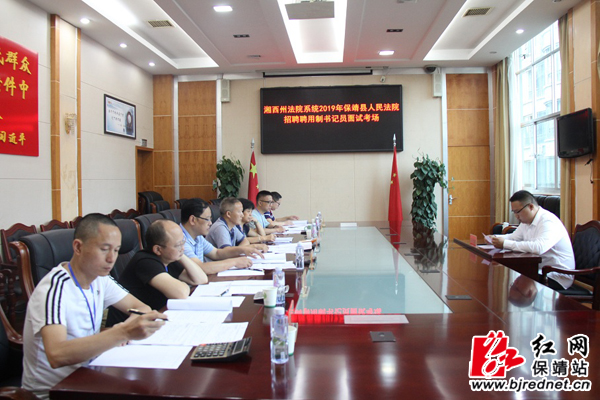 此次面试由湘西中院统一组织、统一命题,主要侧重考核应试者的应变能力、口头表达能力及与职位相关的分析和解决问题的能力。保靖人民法院根据面试要求在考场设有考官7名、计时员、统分员、核分员、监督员各1名。当天上午7点半,应试考生陆续进入保靖人民法院,逐一进行物品寄存,严格安检,进入候考区候考,抽签决定面试顺序。八点半,考生在工作人员的引导下单独进入考场答题。考生面试结束后,由主考官宣布成绩,并由考生在《面试成绩单》上签字确认无误。