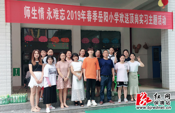 近日,笔者获悉,保靖岳阳小学为顶岗实习教师举行了欢送会,大家合影留念,留下一年来点点滴滴的回忆。