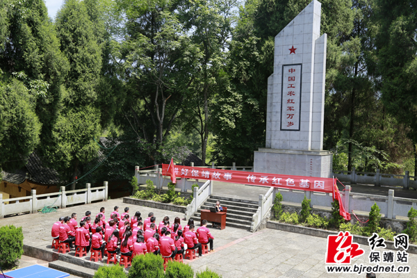在烈日下的教学现场,全体党员面对党旗庄重地举起右手,集体宣读入党誓词。随后,全体中青班学员在英雄纪念碑前细心聆听县委党校老师王娟讲解红军在保靖的革命故事。保靖英雄儿女不屈不挠、前仆后继的革命精神,革命先烈们的丰功伟绩、崇高品质、高尚人格以及光辉形象,深深地感染了现场每一位学员。