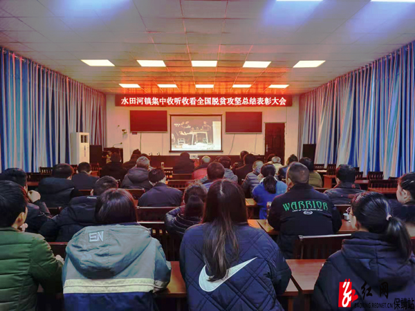 水田河镇党委组织干部集中收看全国脱贫攻坚总结表彰大会。