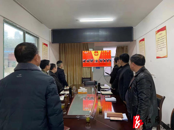 清水坪镇组织干部集中收看全国脱贫攻坚总结表彰大会直播。