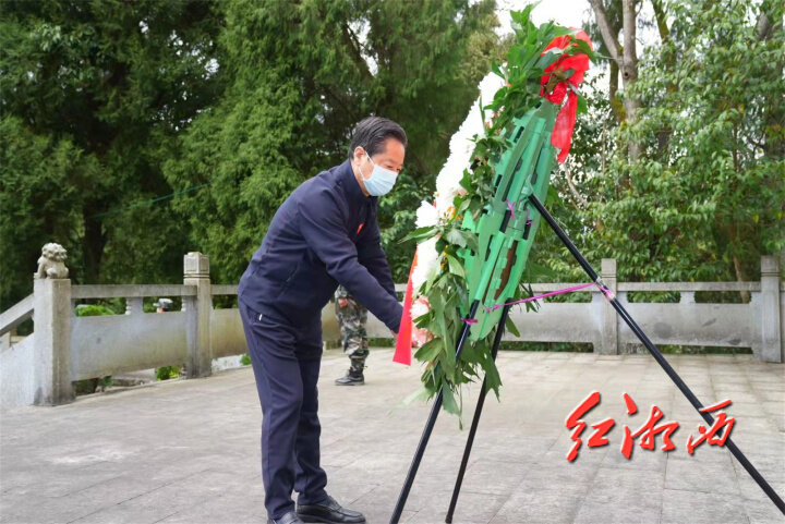 踏寻红色历史足迹,传承百年奋斗基因。来到普戎镇糯梯村爱国主义教育基地的红军烈士纪念园,在苏维埃红军烈士纪念碑前,伴随着庄严肃穆的《献花曲》,虢正贵向革命烈士敬献花篮,寄托哀思。走进纪念馆,虢正贵每到一处都驻足仰看先烈的革命事迹,缅怀先烈的丰功伟绩。